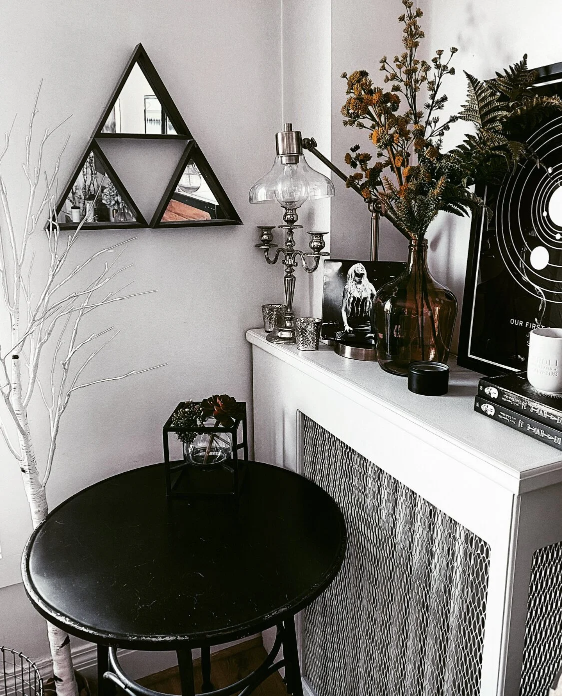 Meanwhile, my Triforce mirrors are interpretive because they are not literally a Legend of Zelda thing. I just bought these mirrors from Target and shaped them to be the Triforce. So unless you're a Legend of Zelda fan, you might not even know that that’s a Legend of Zelda thing. You might just think, “oh she made a cool little triangle shape”.