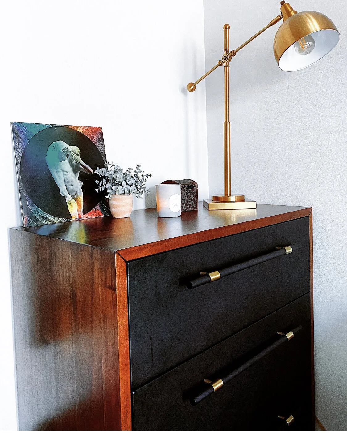 Then there’s the dresser and a nightstand, with some little styling moments on top.